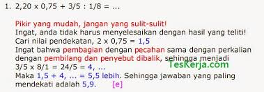 untuk "Psikotes Mtk Dasar Pecahan / Operasi Bilangan Pecahan Skd Tkd Belajarbro / Untuk bisa lolos soal psikotes matematika ini, anda paling tidak membutuhkan 8 sampai 14 jawaban yang benar."